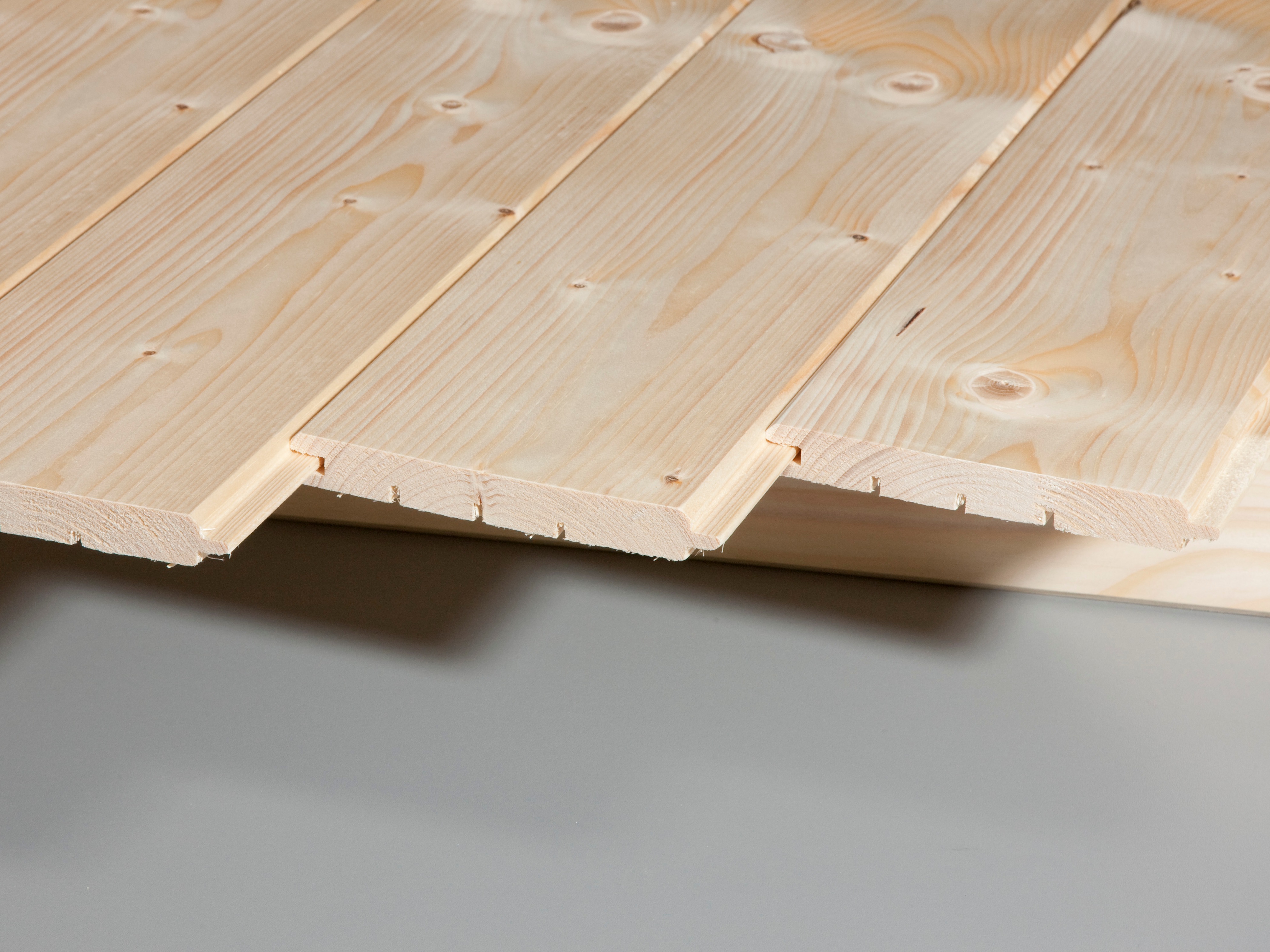 Durch die Nut- und Federverbindung entsteht eine saubere, geschlossene Fläche – optimal für Wand- und Deckenverkleidungen im Innenbereich sowie im geschützten Außenbereich.